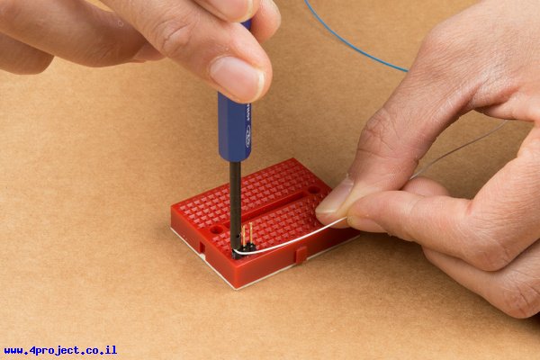 הכניסו את החוט החשוף לתוך החור בקצה הכלי/עיפרון.