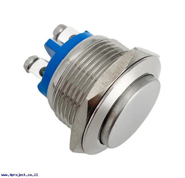 גוף הכפתור עשוי בפלדת אלחלד בקוטר של כ-19 מ"מ. הצורה העגולה מאפשרות התקנה קלה בפנל הפרוייקט.