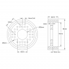 קוטר החור האמצעי הוא 32 מ"מ וחורים הנוספים מתאימים לתבנית החורים של רכיבי goBILDA.