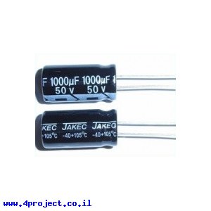 זהו קבל אלקטרוליטי סטנדרטי בעל קיבולת 1000uF ומתאים למתחים עד 50V.