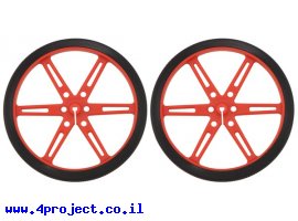 • גלגל 60x8 מ"מ אדום לציר D בקוטר 3 מ"מ - ערכה של 2